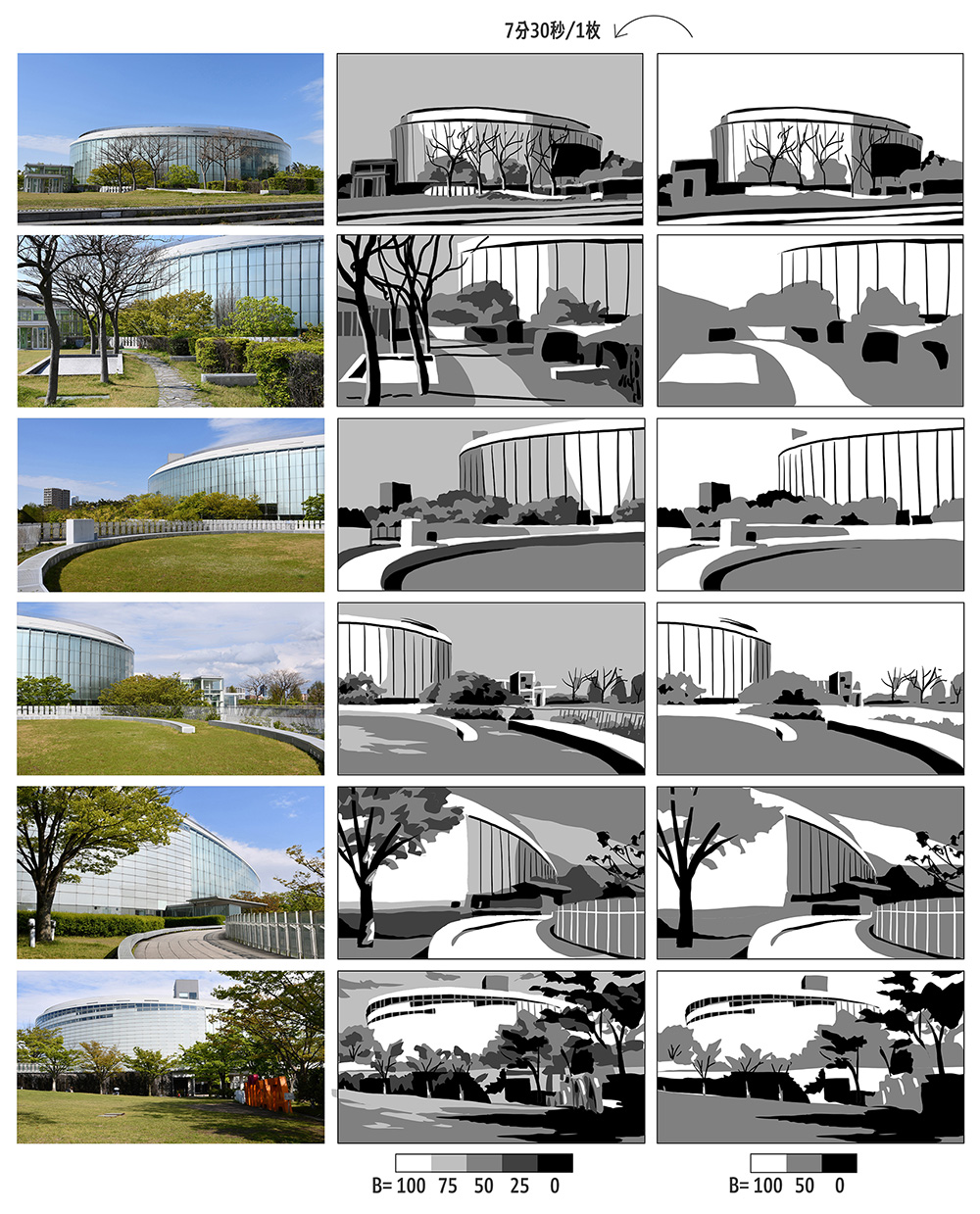 上手く描くのではなく短時間、最小限の明度と形で描くことで