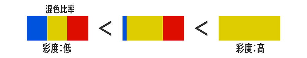 頭の中で赤青黄の比率をイメージして疑似的に彩度を考えます