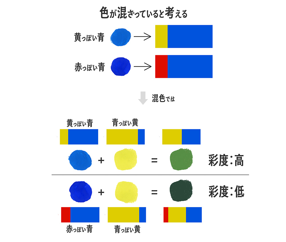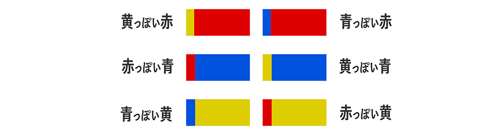 「赤っぽい」「青っぽい」「黄っぽい」といった色味がある