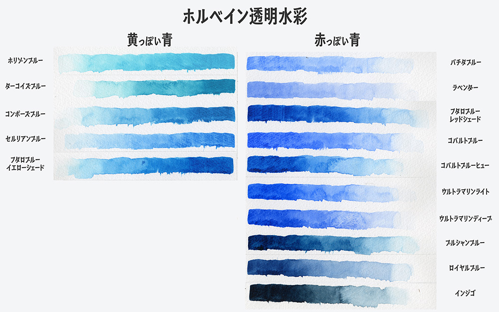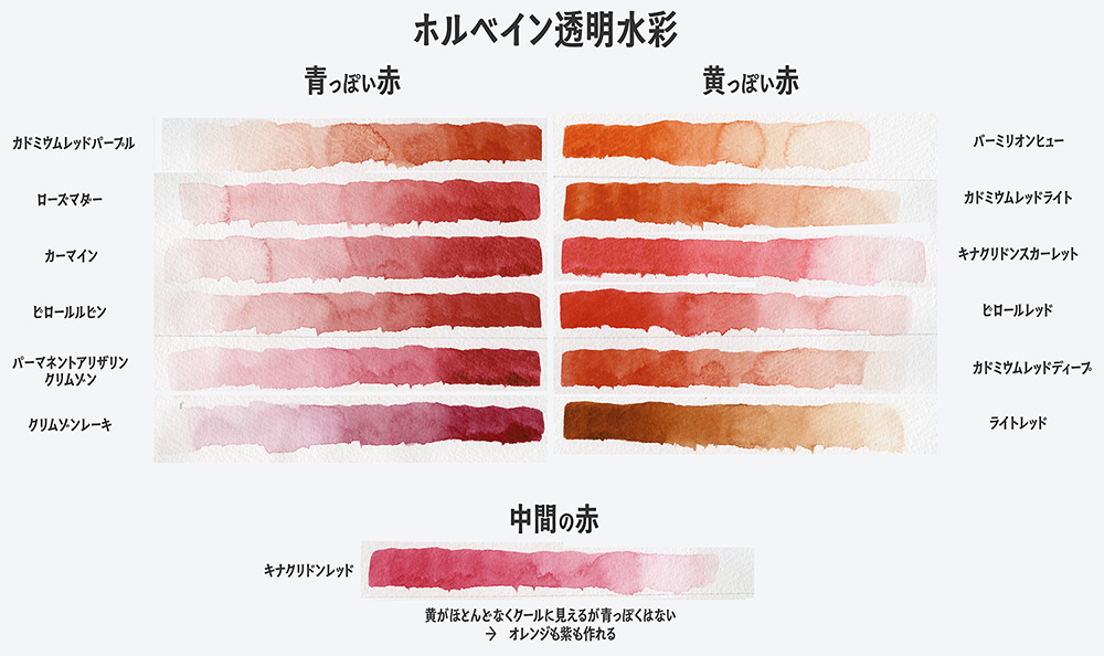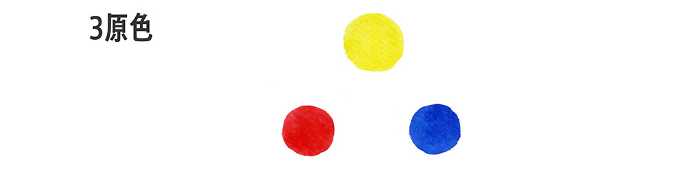 具体的には絵具の3原色(RBY赤青黄)と言われている色(ホルベイン透明水彩)