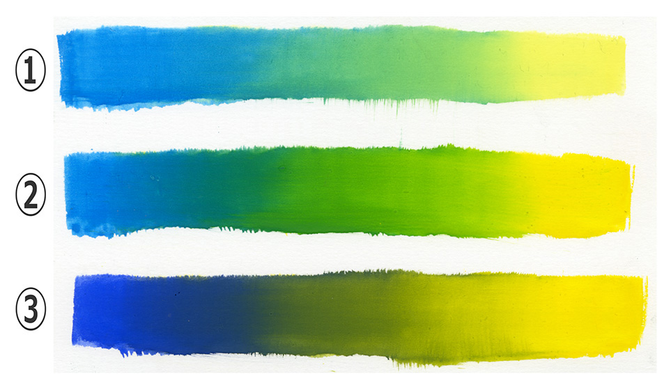 ホルベイン透明水彩を用いた、分裂原色の一例