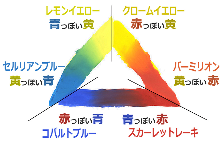 絵具の3原色印刷の3原色合わせた6色を使うことが多いです