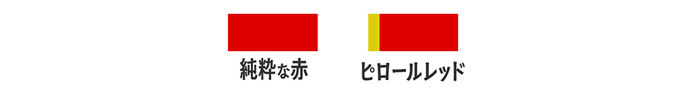 しかしピロールレッドは「純粋な赤」ではなく「黄っぽい赤」です